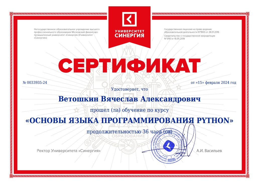 Мой первый шаг в мир Python Когда я впервые столкнулся с программированием, я понял, что это не просто работа с кодом, а целая философия мышления и решения задач. Моя отправная точка на этом пути — получение сертификата "Основы языка программирования PYTHON". Это был не просто диплом, а подтверждение моего стремления и …